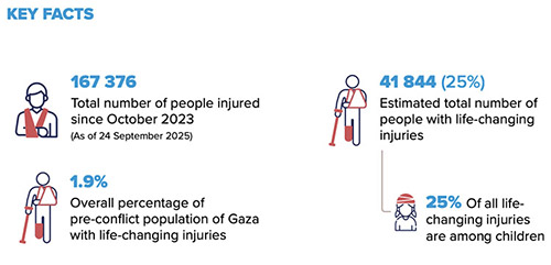 2 October 2025, Jerusalem- Nearly 42,000 people in the Gaza Strip have life-changing injuries caused by the ongoing conflict, according to the latest WHO estimates released on 2 October. One in four of these injuries are in children.