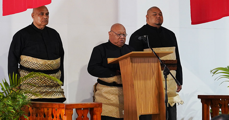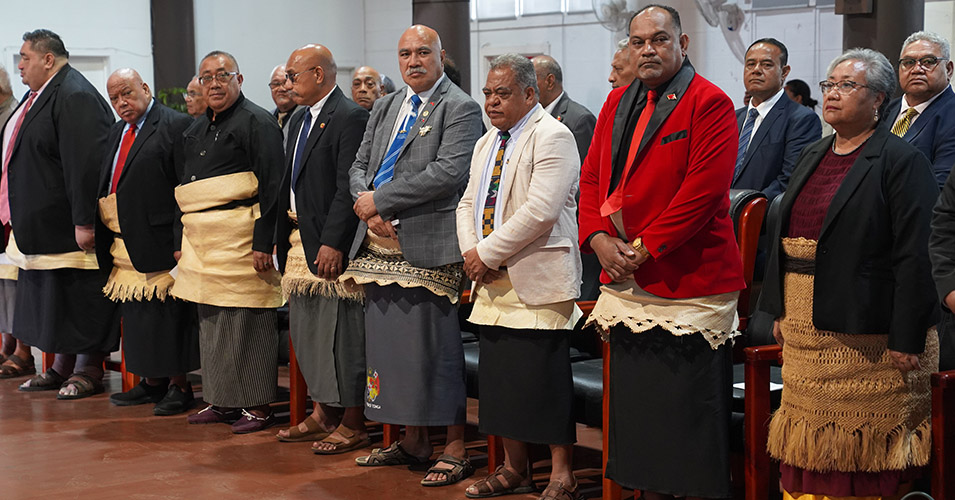 The King was not present but had his speech delivered by three nobles of the realm. Lord Tu’i’afitu read the royal address, accompanied by Lord Ve’ehala and Lord Luani, in a brief soft closing ceremony today, 23 October, at Parliament House in Nuku'alofa.