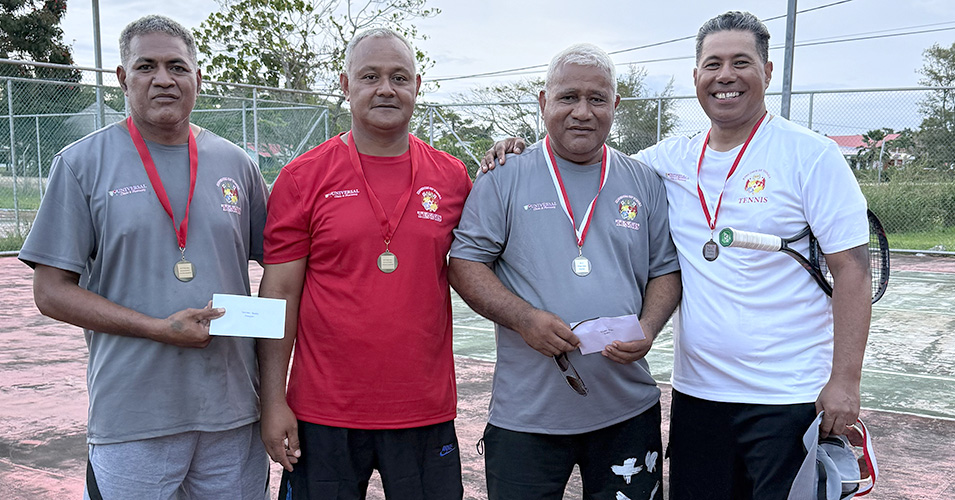 Veteran Champions and Finalists from left: Fifita Pau'u, Sione Toke, Dr. Pila Funaki, Sione Folau Lavaka. Photo: Tonga Tennis.