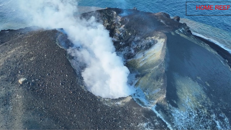 “At Home Reef, the team observed the volcanic island that has been constructed is over 1 km in diameter and consists of a solid base of lava flows, with a cone on top. The new island is around 70 m high and has an actively venting crater emitting steam and SO2 gas,” MLSP&NR reported.