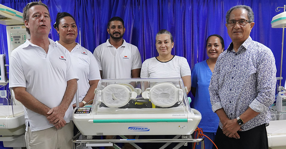 The purchase of a new transport incubator for the Paediatric Ward at Vaiola Hospital in Nuku’alofa was supported by the Tanoa Hotel with a donation of $60,000.