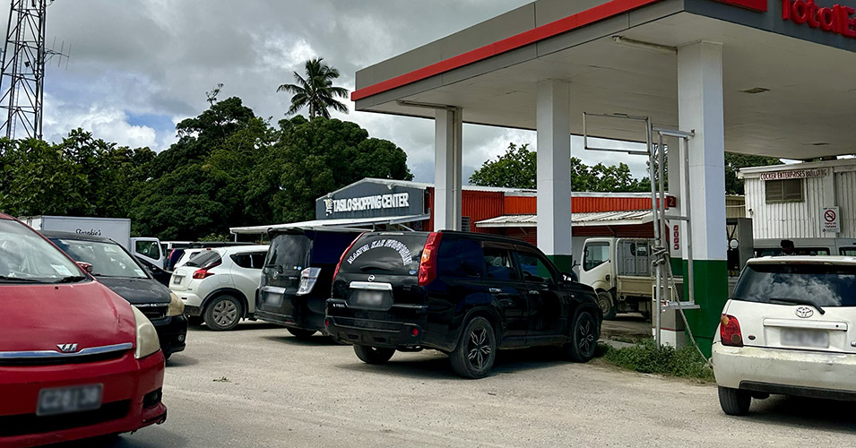 This morning, hundreds of vehicles lined up at gas stations around Tongatapu, some waiting for hours to get a refill.