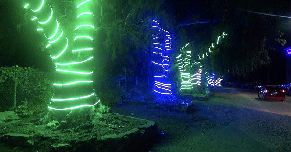 They join the Hahake District where many homes are covered with Christmas lights and decorations.