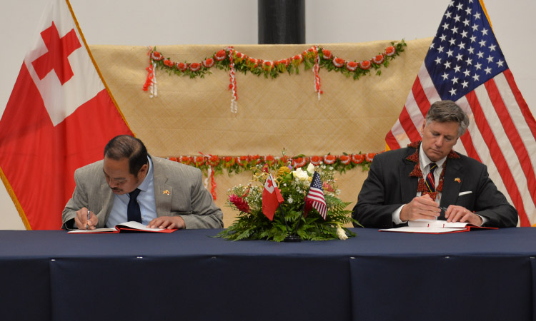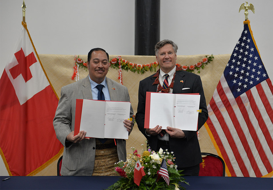 The United States and Tonga signed an enhanced maritime security agreement today, Friday during a brief but high-level visit by U.S. Deputy Secretary of State Christopher Landau, deepening cooperation to combat illegal fishing, drug trafficking and transnational crime across the Pacific.