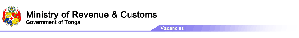 Employees under the Public Service who wish to apply must submit your application with the endorsementof your respective Chief Executive Officer. A copy of the Job Description can be requested via email to hr [at] revenue [dot] gov [dot] to / hrmorc101 [at] gmail [dot] com or download from the Ministry’s website @ www.revenue.gov.to/vacancy.